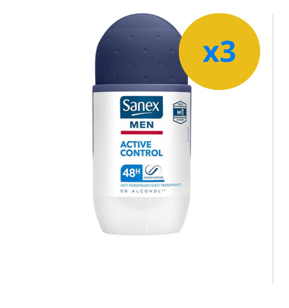 2 x ROLL-ON SANEX MEN ACTIVE CONTROL 48H 50ML 0% ALCOOL