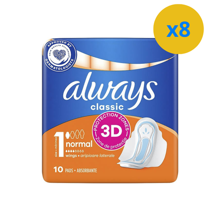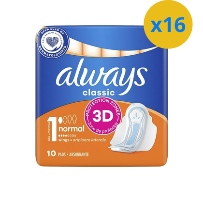 ALWAYS SERVIETTES HYGIENIQUES 3 ACTION CLASSIC 10PC NORMAL AVEC AILES TAILLE 1