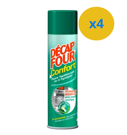 4 х DECAP'FOUR SPRAY CONFORT NETTOYANT MÉNAGER FOURS TRADITIONNELS OU PYROLYSE SANS SOUDE CAUSTIQUE 500 ML