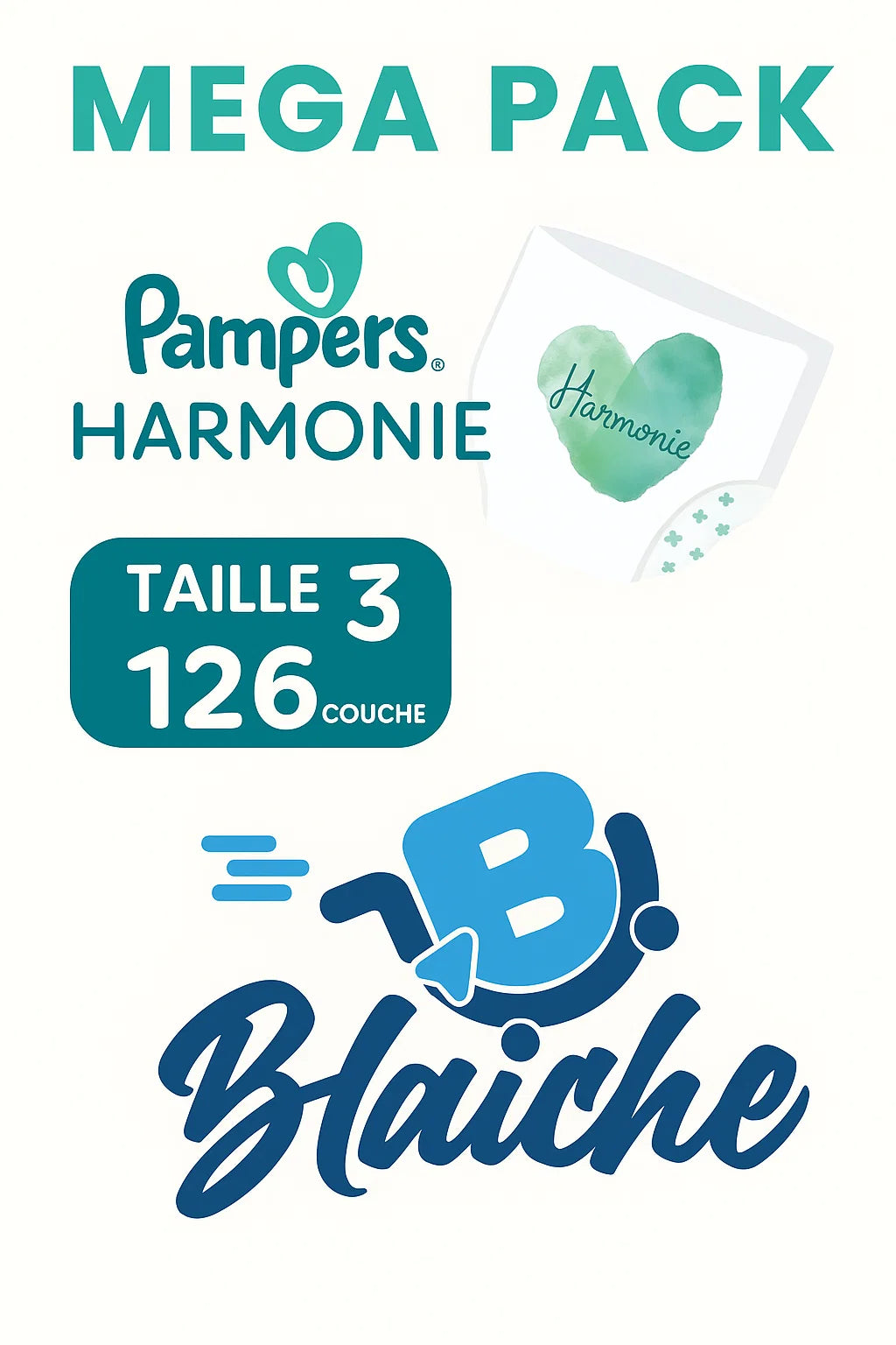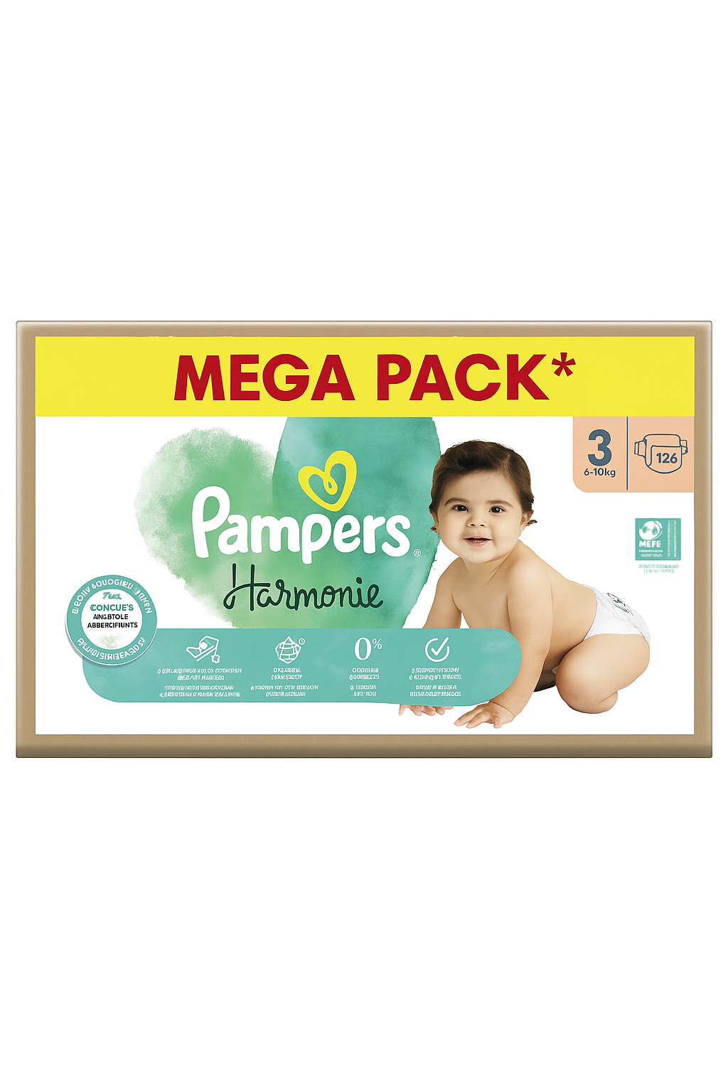 PAMPERS COUCHES BÉBÉ HARMONIE -TAILLE 3 - 126 COUCHES ( 6-10KG )